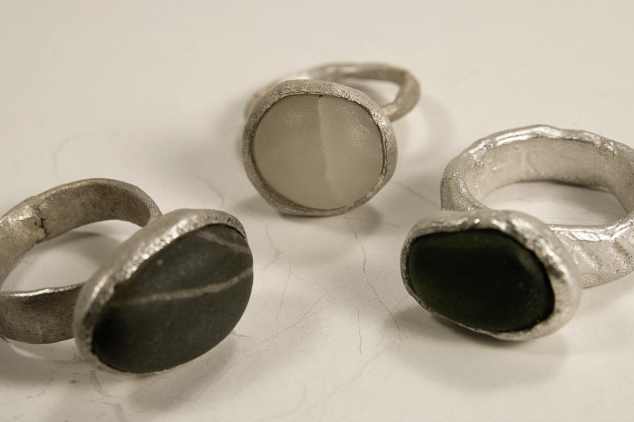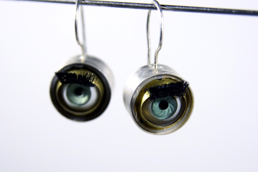 | Brosche Silber geschwärzt / Ast lackiert / Stahlnadel | Ringe Silber / Kieselsteine | Ohrhänger Silber / Puppenaugen | ||
