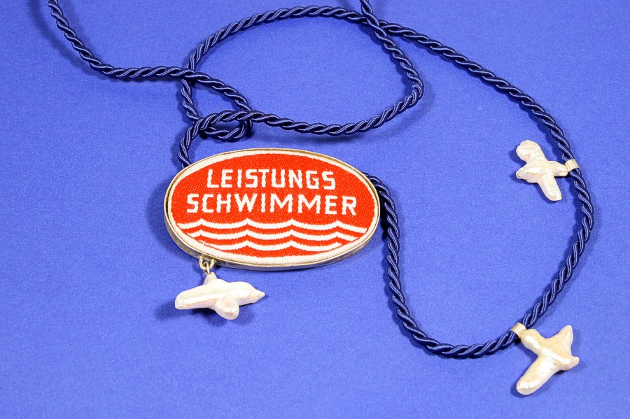 | Kette Silber / Stoff / Baumwollkordel / Süßwasserperlen | Ansteckpin Silber / Kunststoff | Ring Silber / Eisen |