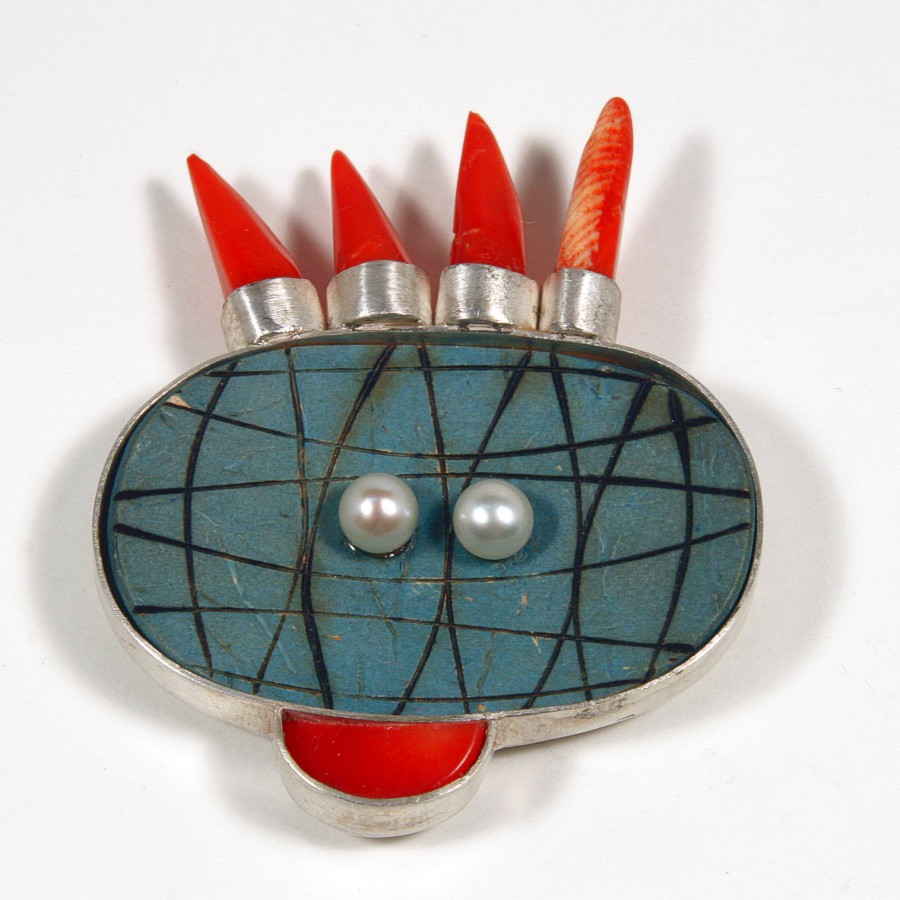 | Ring Silber / Button | Brosche Silber / Korallen/ Knopf aus Kokosschale / Süßwasserperlen | Kette Silber / Jadeperlchen / Kordel / Holz | ||