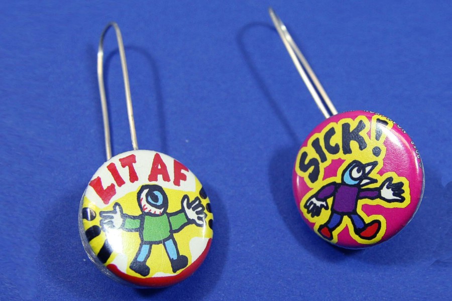 | Ohrhänger Silber / Wäscheknöpfe | Ring Silber / Blattgold / Fotolinse | Ohrhänger Silber / Blitzlichter | ||