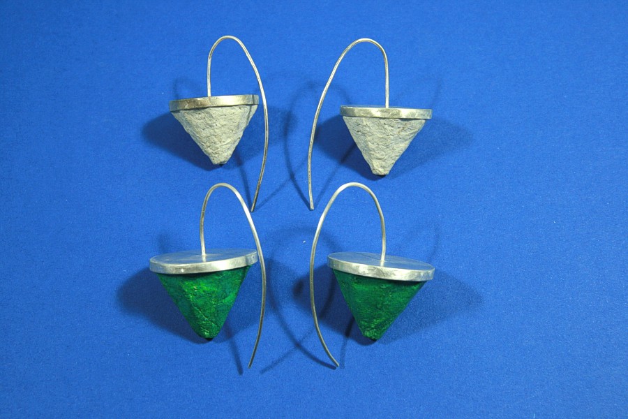 | Ohrhänger Pappmaché, Silber | Brosche Pappmaché, Silber | |||||||