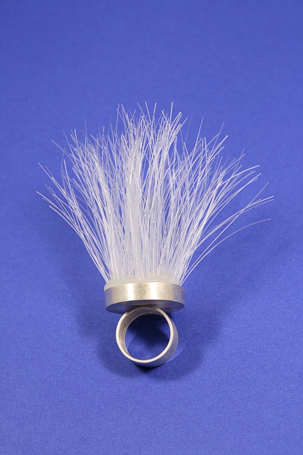 | Ring Silber / Silikon / Nylonfäden | Ohrstecker Silber geschwärzt / Silikon |